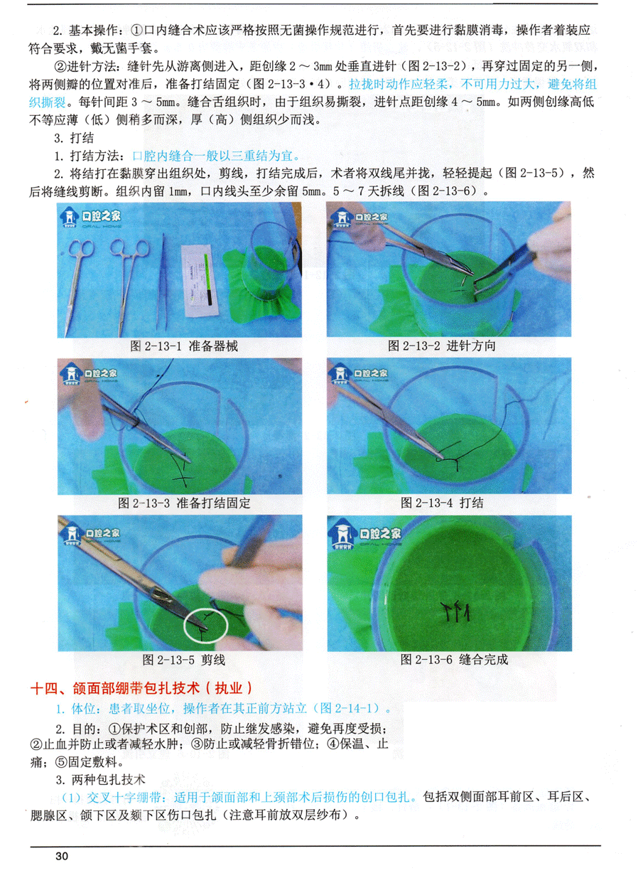 十三、口内缝合术 十四、颌面部绷带包扎术