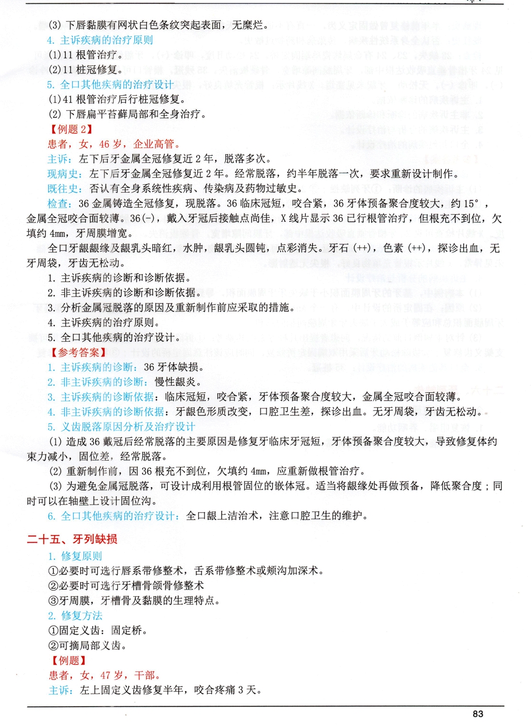 二十四、牙体缺损 二十五、牙列缺损 二十六、牙列缺失
