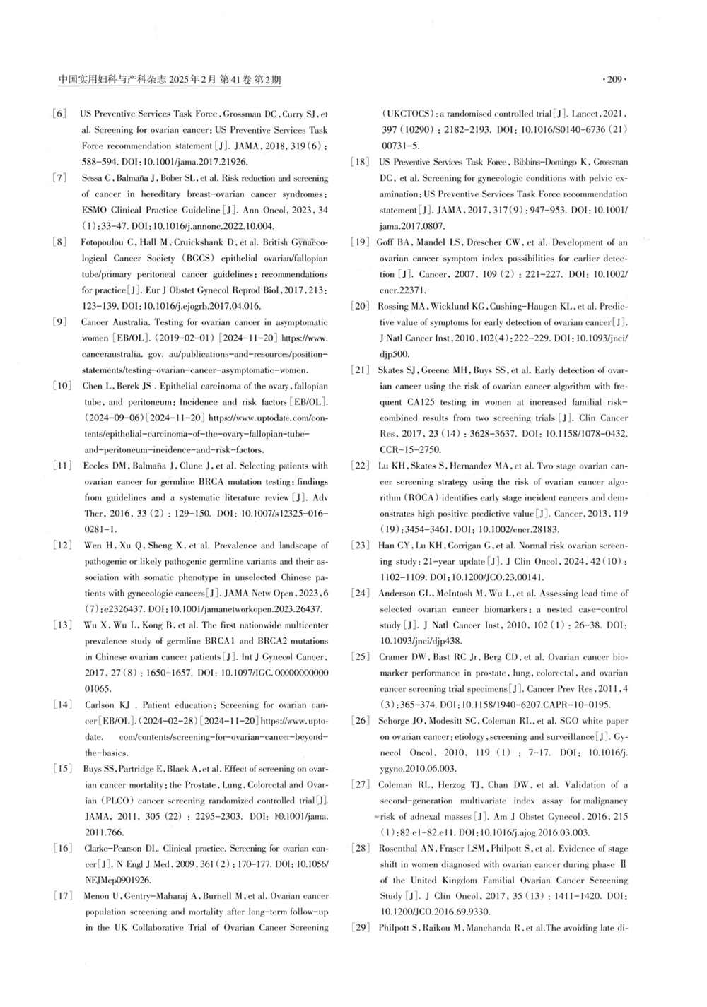 卵巢癌早期筛查专家共识2025