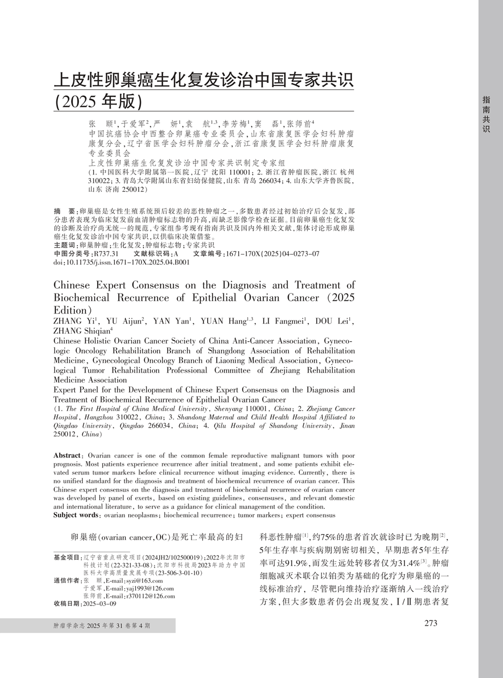 上皮性卵巢癌生化复发诊治中国专家共识(2025年版)