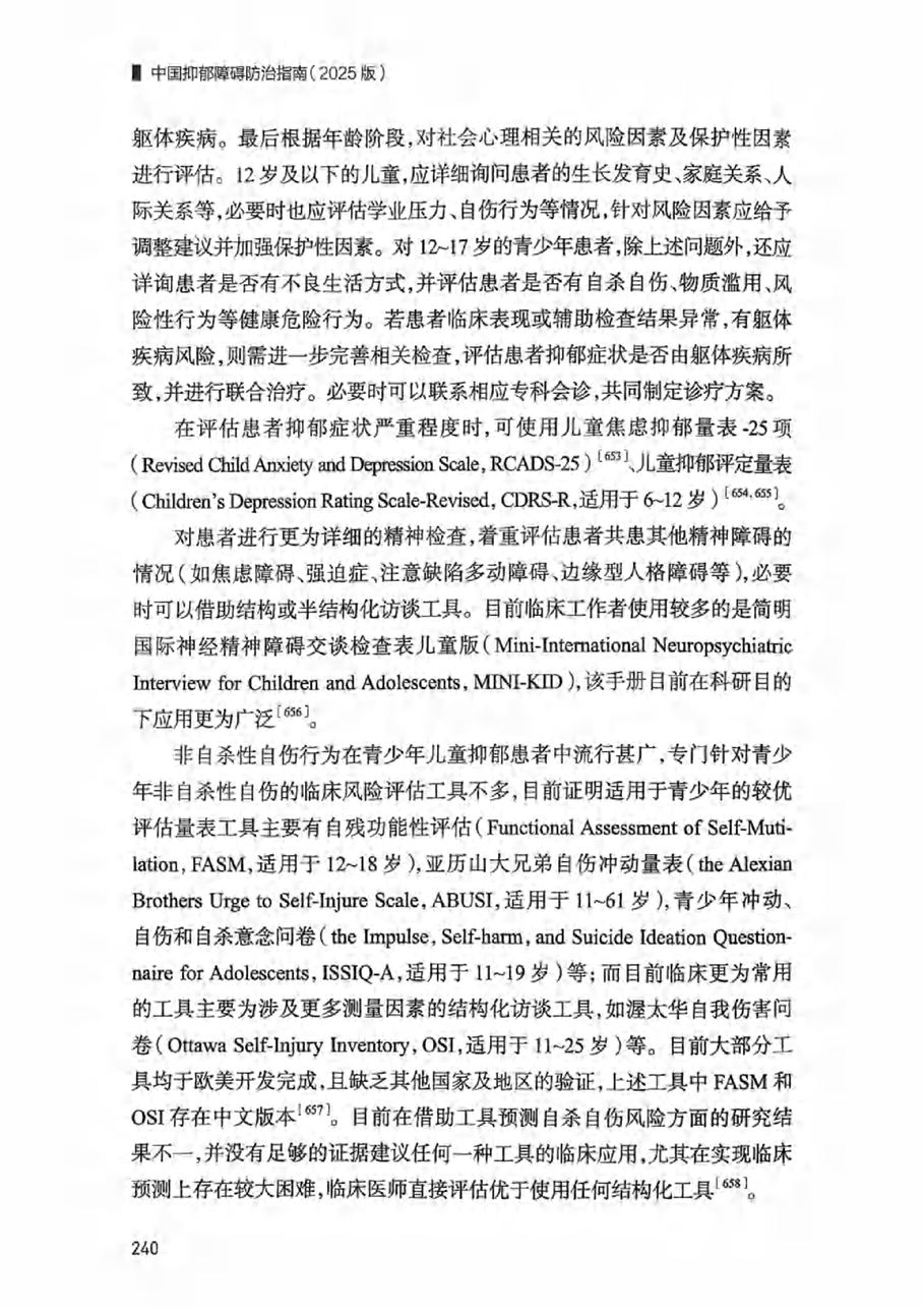 三、 儿童青少年抑郁障碍诊疗的评估