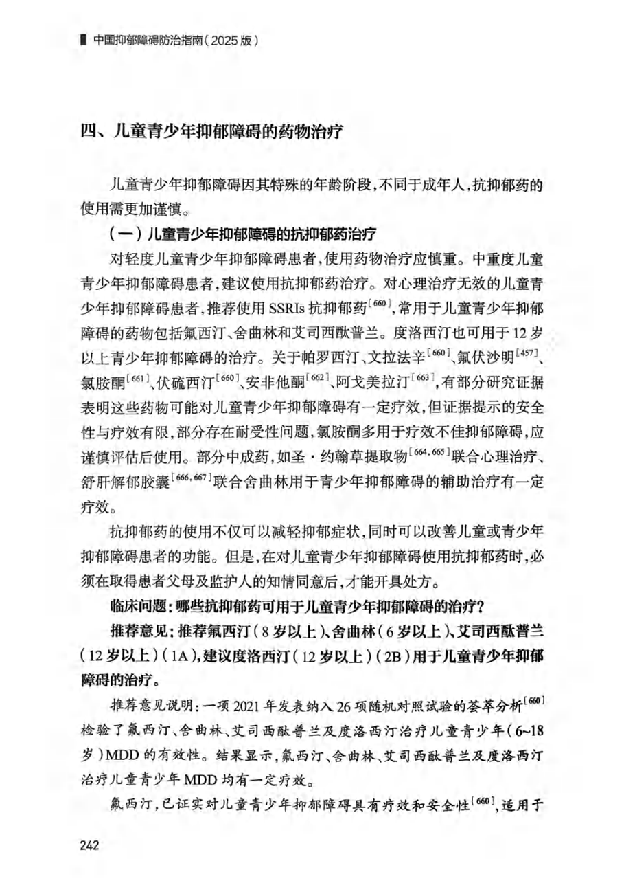 四、 儿童青少年抑郁障碍诊疗的药物治疗