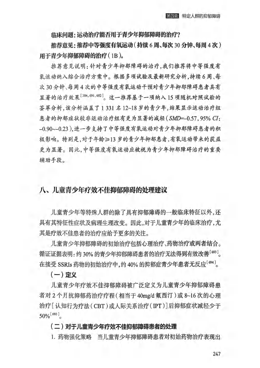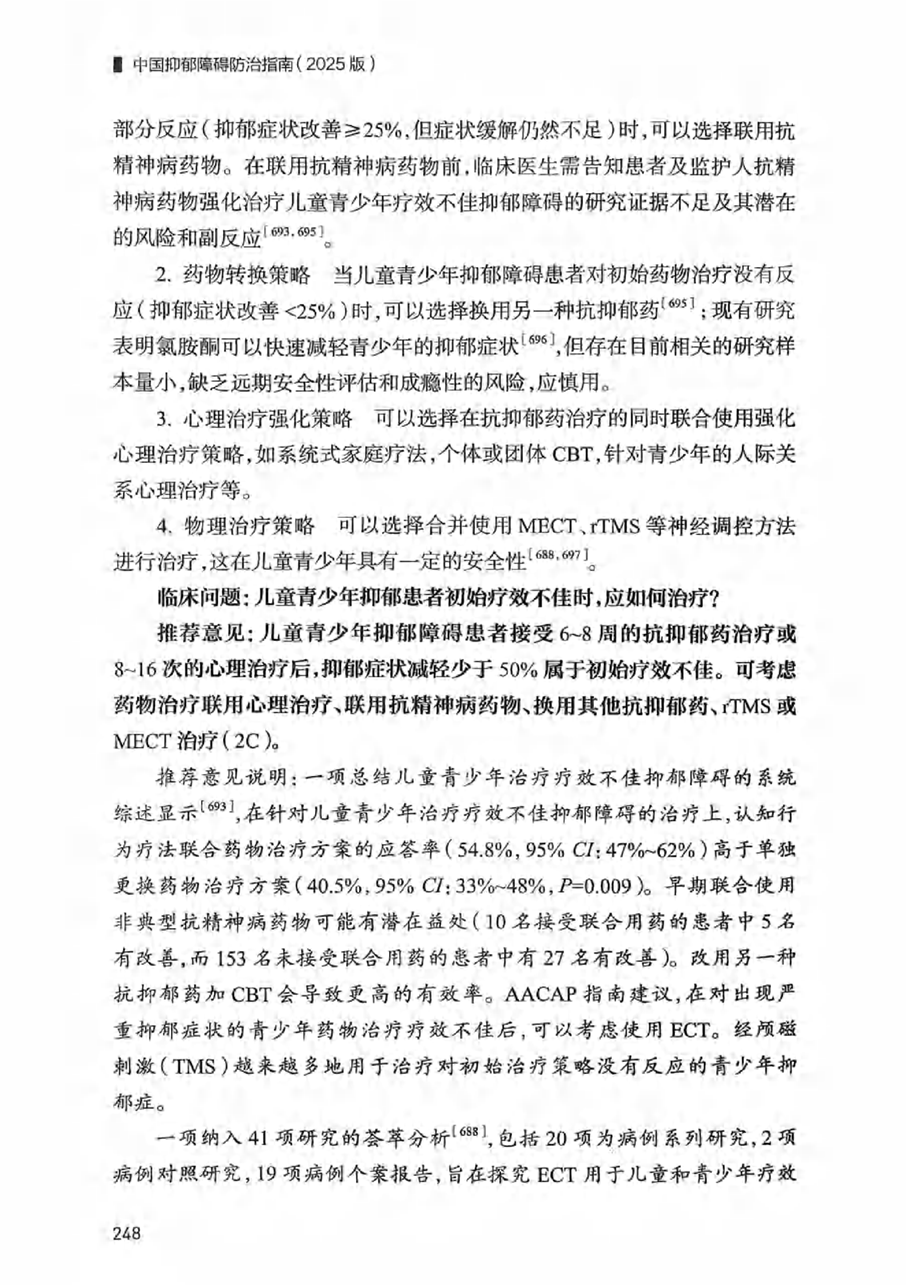 八、儿童青少年疗效不佳抑郁障碍诊疗的处理建议