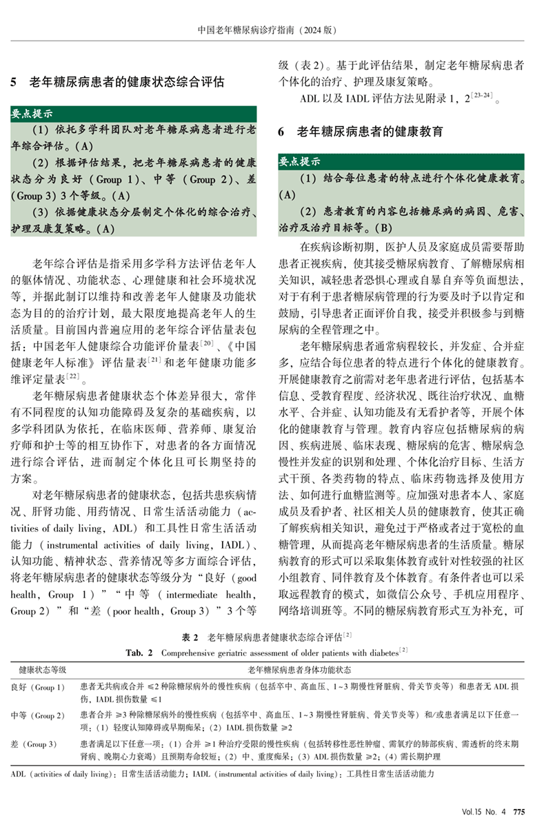 老年糖尿病评估、健康教育