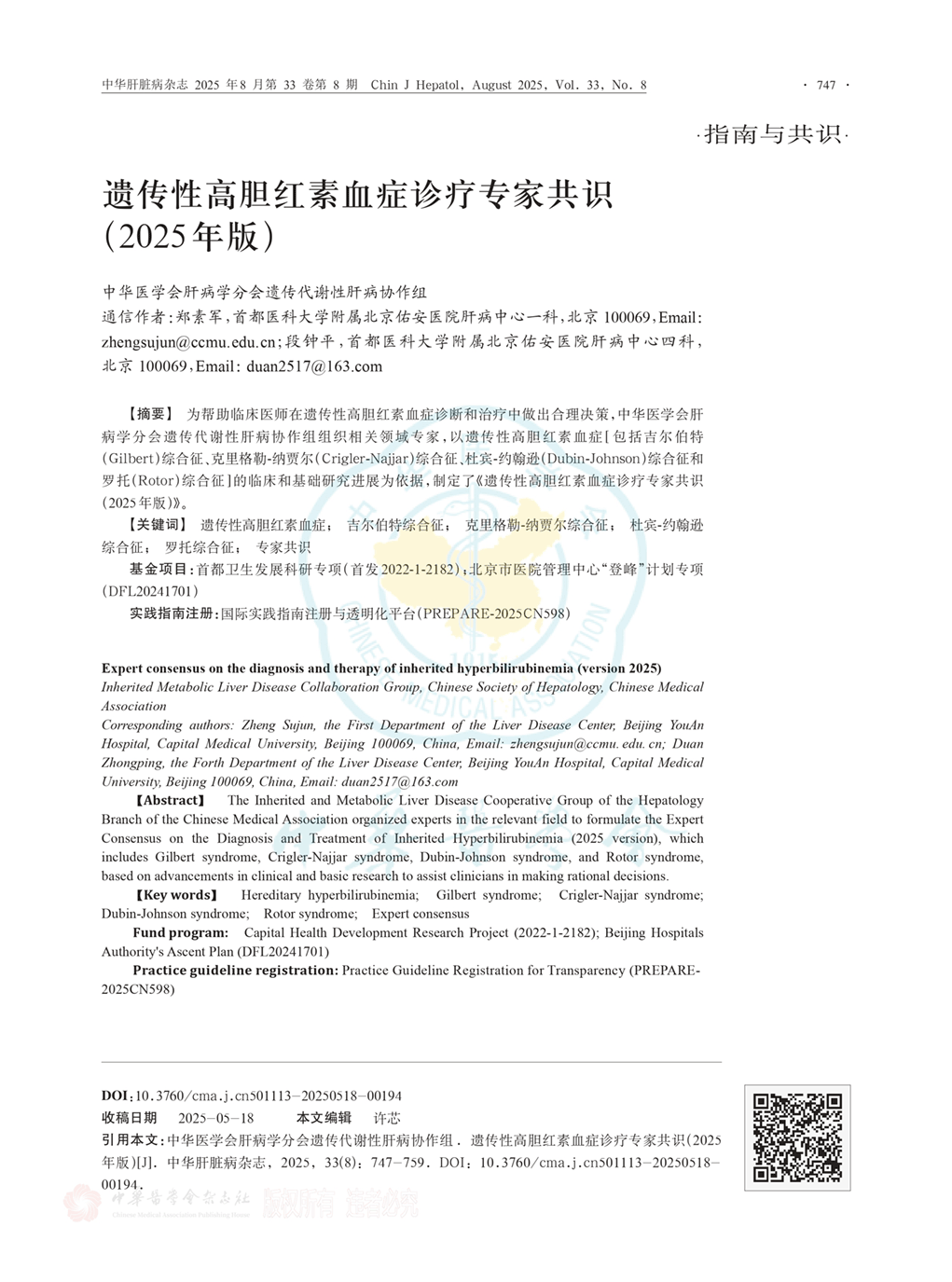 遗传性高胆红素血症诊疗共识2025