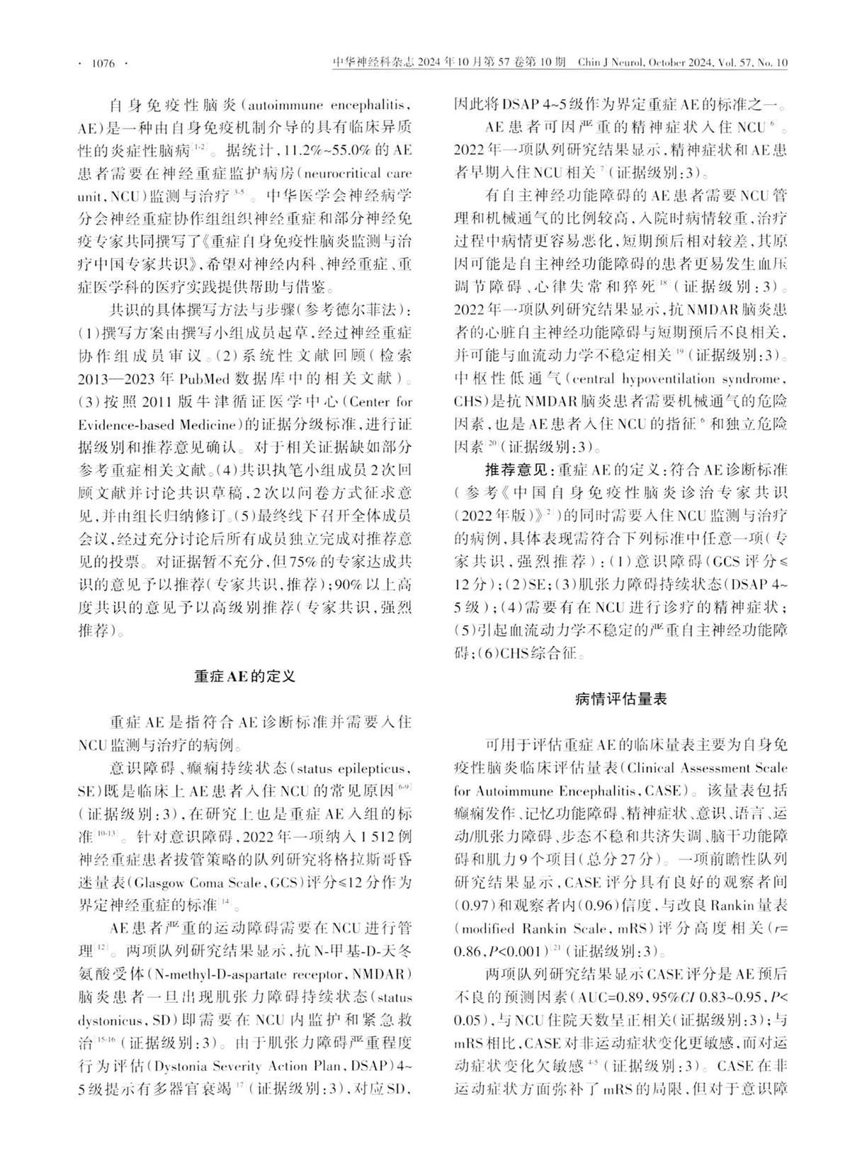 重症自身免疫性脑炎监测与治疗专家共识(2024版)