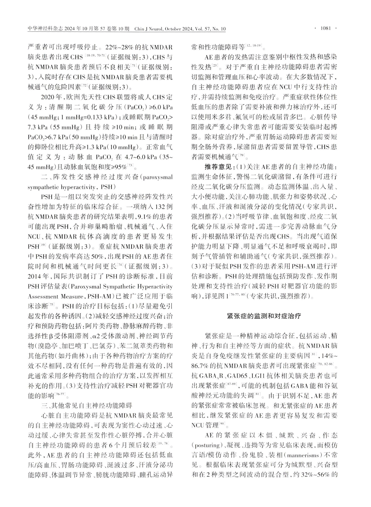运动障碍的监测和对症治疗/自主神经功能障碍的监测和对症治疗