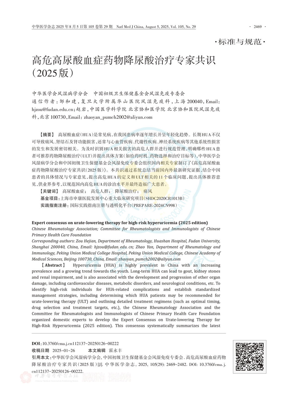 高危高尿酸血症药物降尿酸治疗专家共识(2025年版)