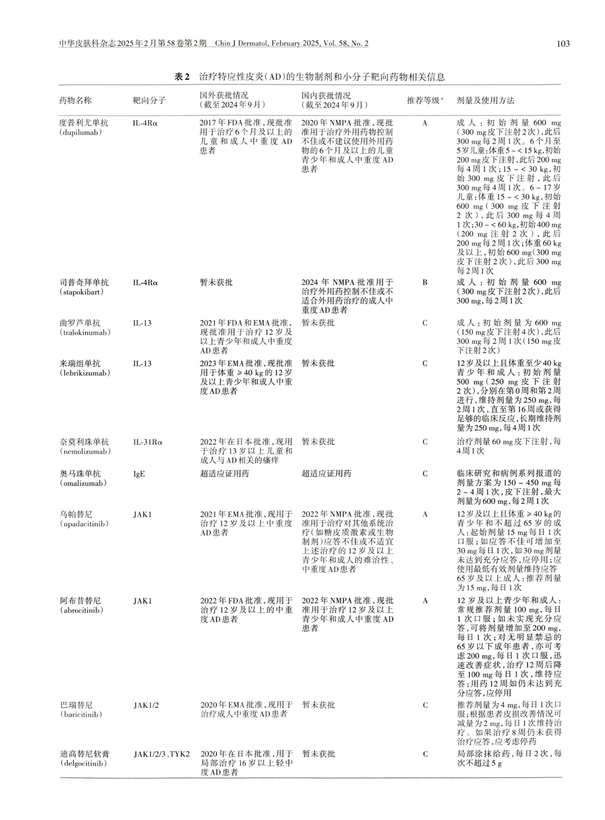 表2 治疗特应性皮炎生物制剂和小分子靶向药信息