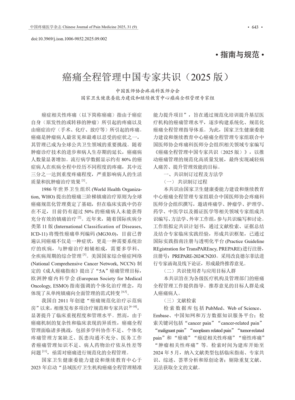 癌痛全程管理专家共识(2025版)