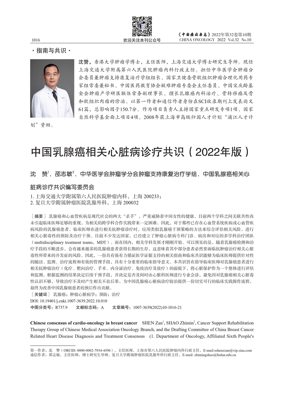 中国乳腺癌相关心脏病诊疗共识(2022年版)