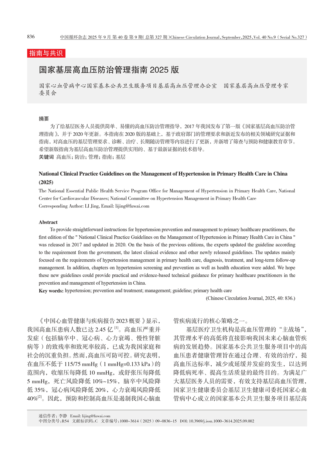 国家基层高血压防治管理指南2025版