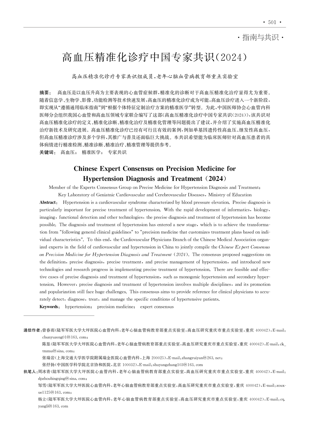 高血压精准化诊疗中国专家共识(2024)