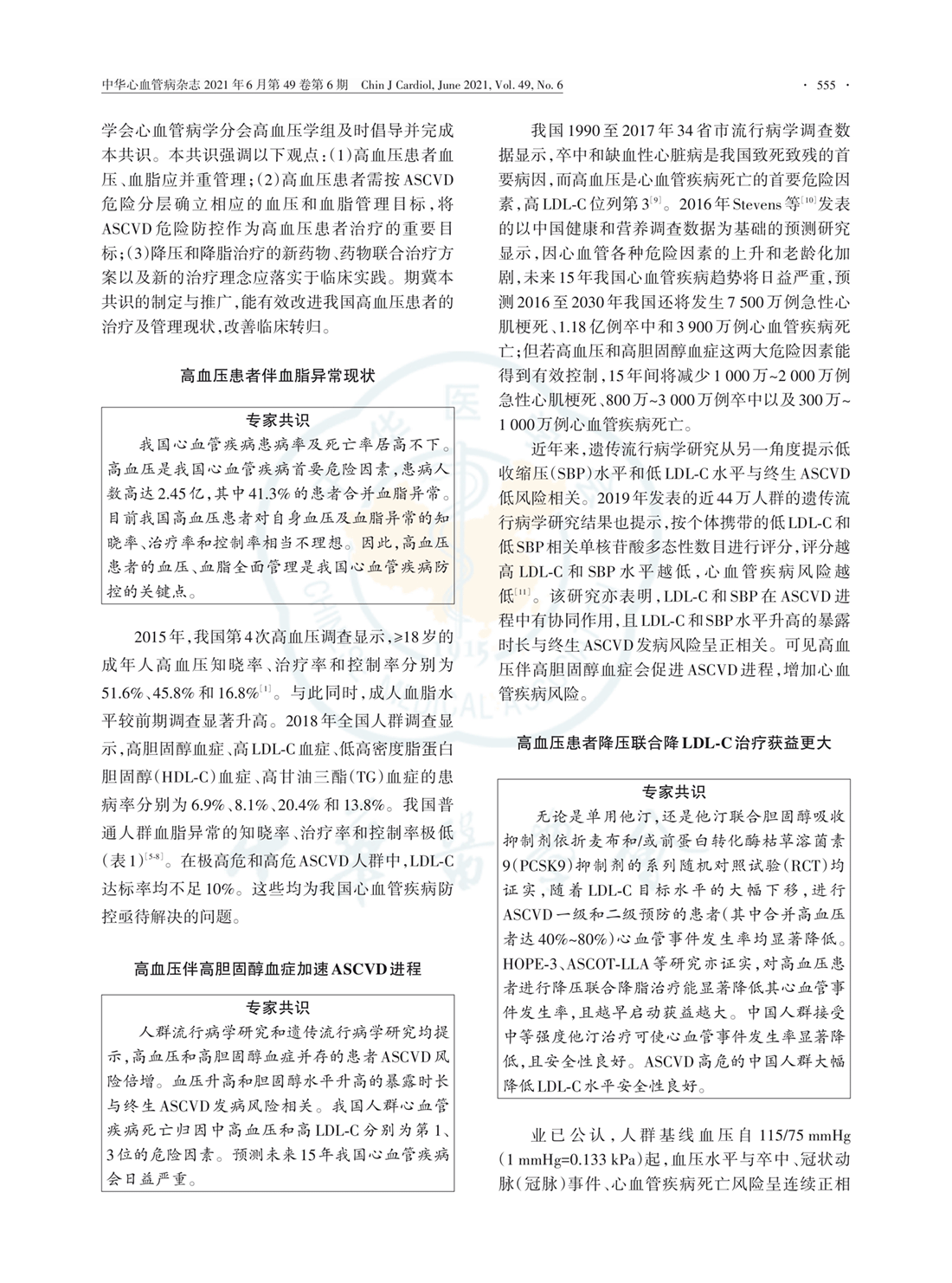 高血压患者血压血脂综合管理的专家共识(2021年)