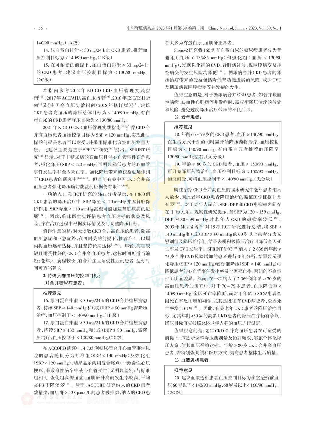 五、CKD合并高血压降压治疗的目的、时机和控制目标