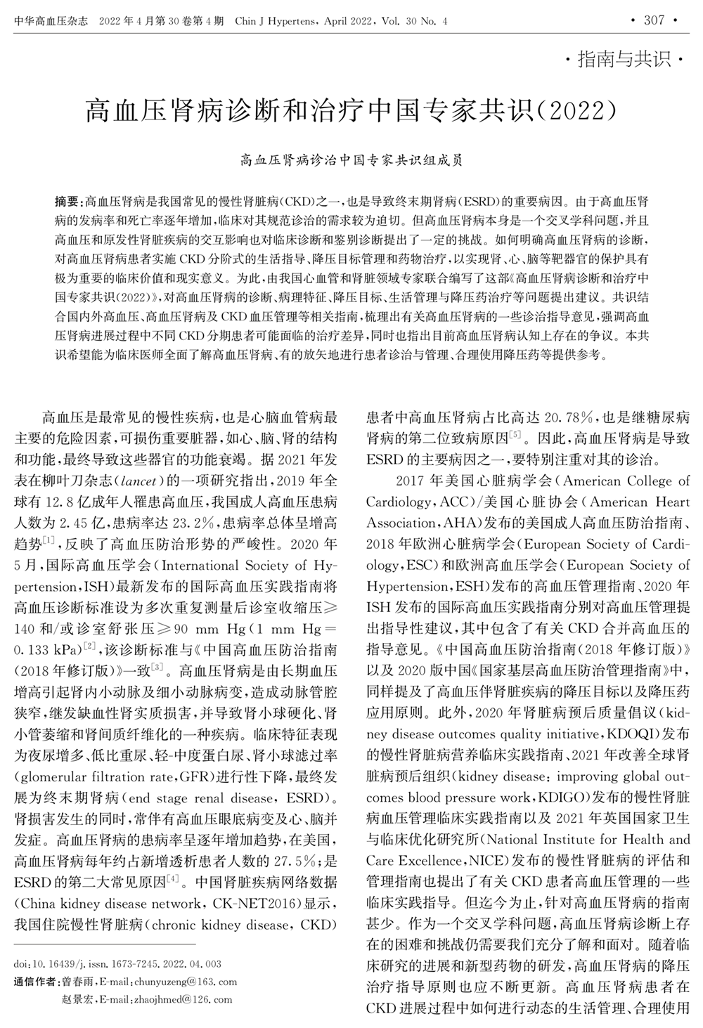 高血压肾病诊断和治疗专家共识(2022年)