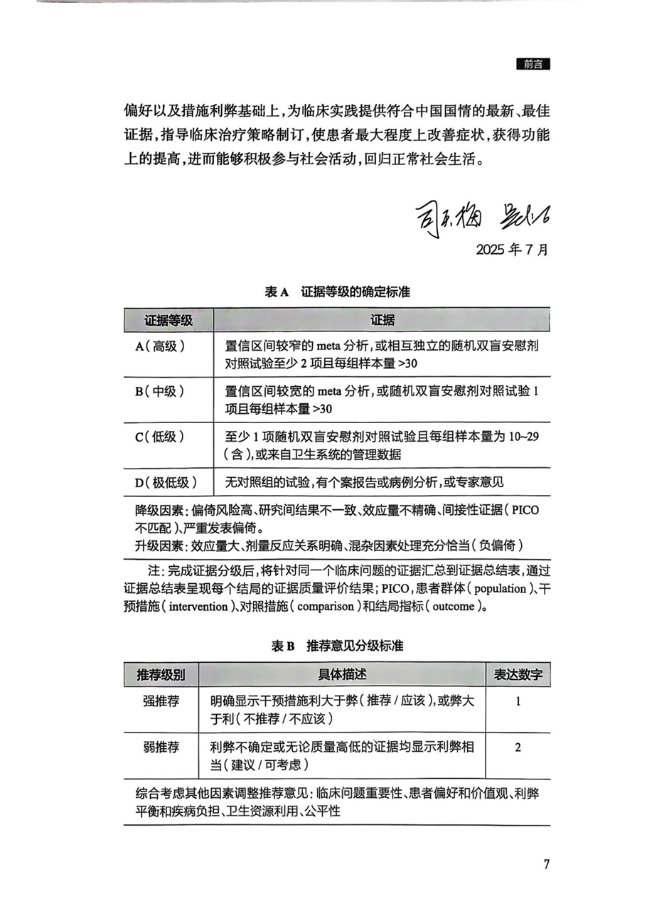 表A 证据等级的确定标准 表B 推荐意见分级标准