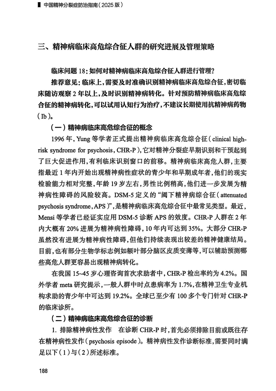 三、精神病临床高危综合征人群的研究进展及管理策略