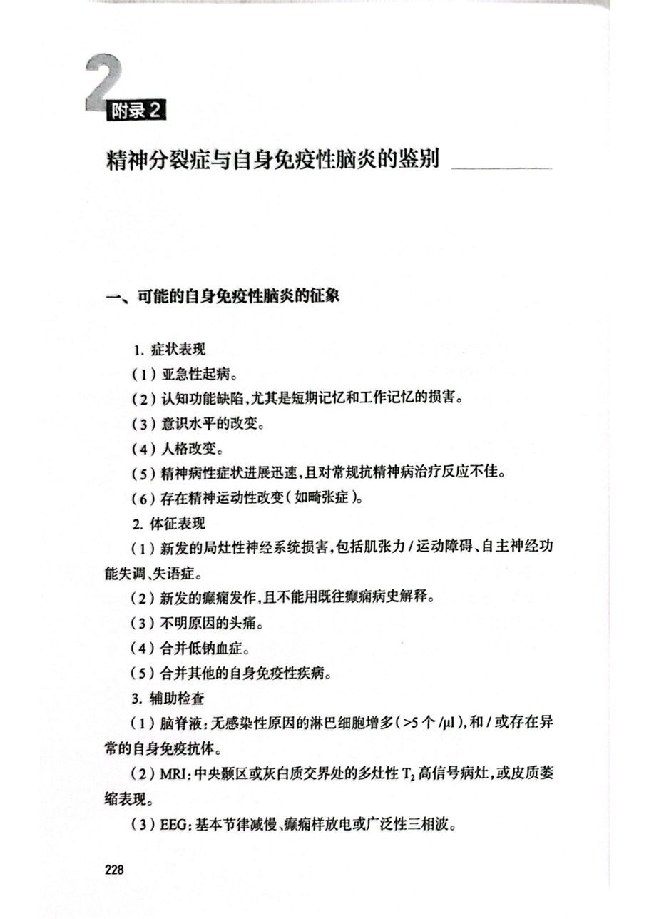 附录2 精神分裂症与自身免疫性脑炎的鉴别