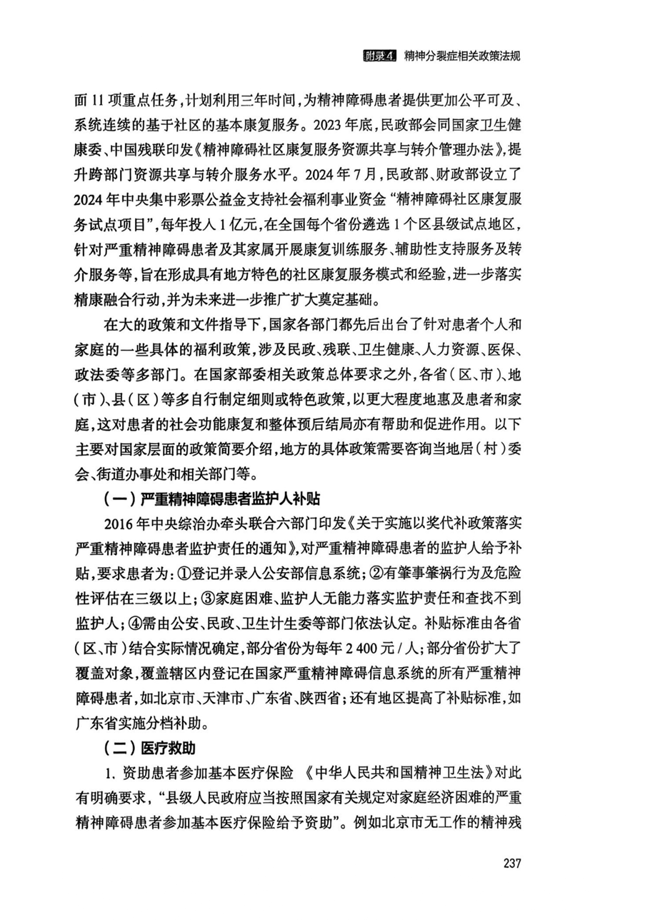 附录4 精神分裂症相关政策法规