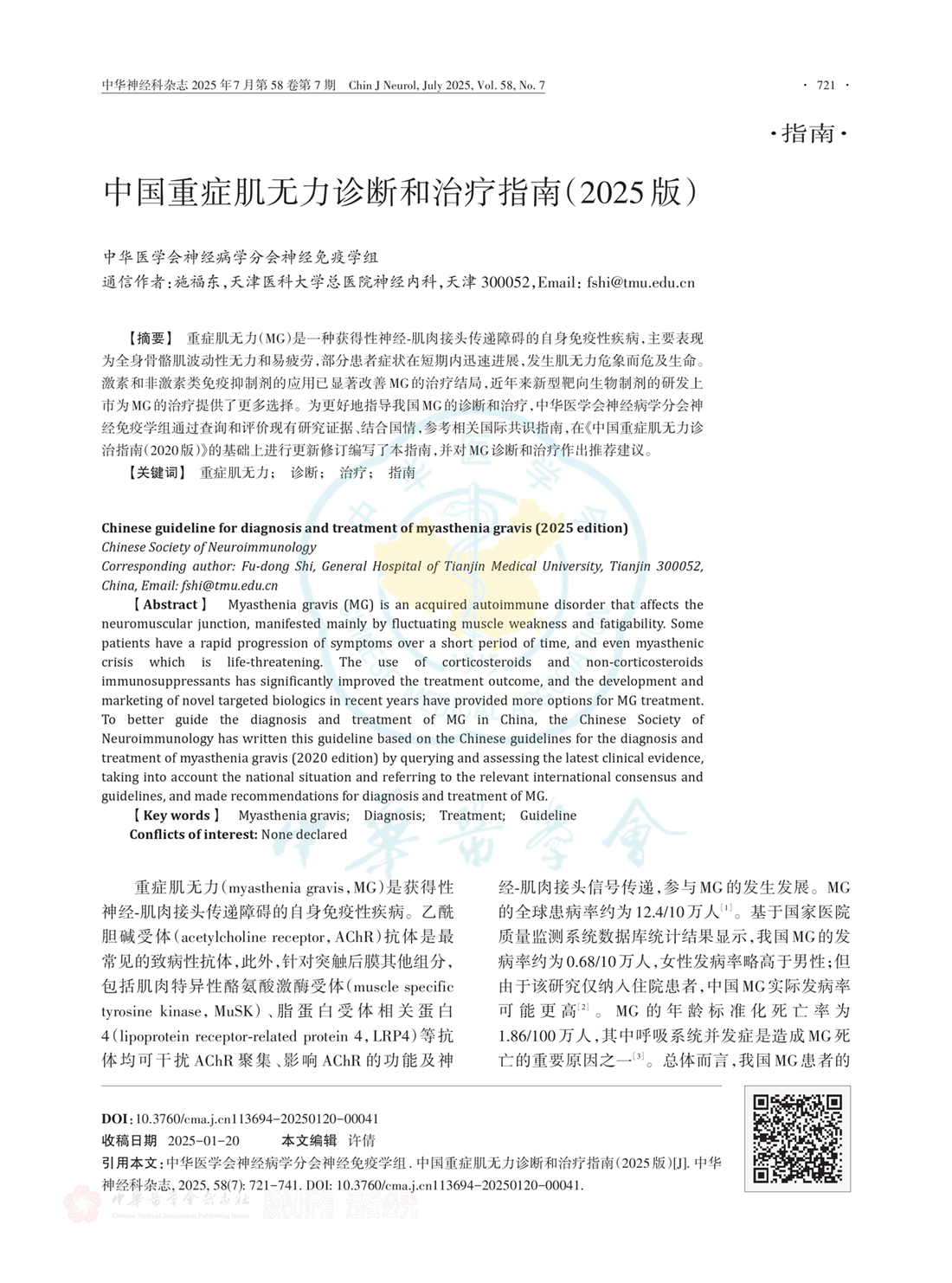 重症肌无力诊断和治疗指南(2025版)