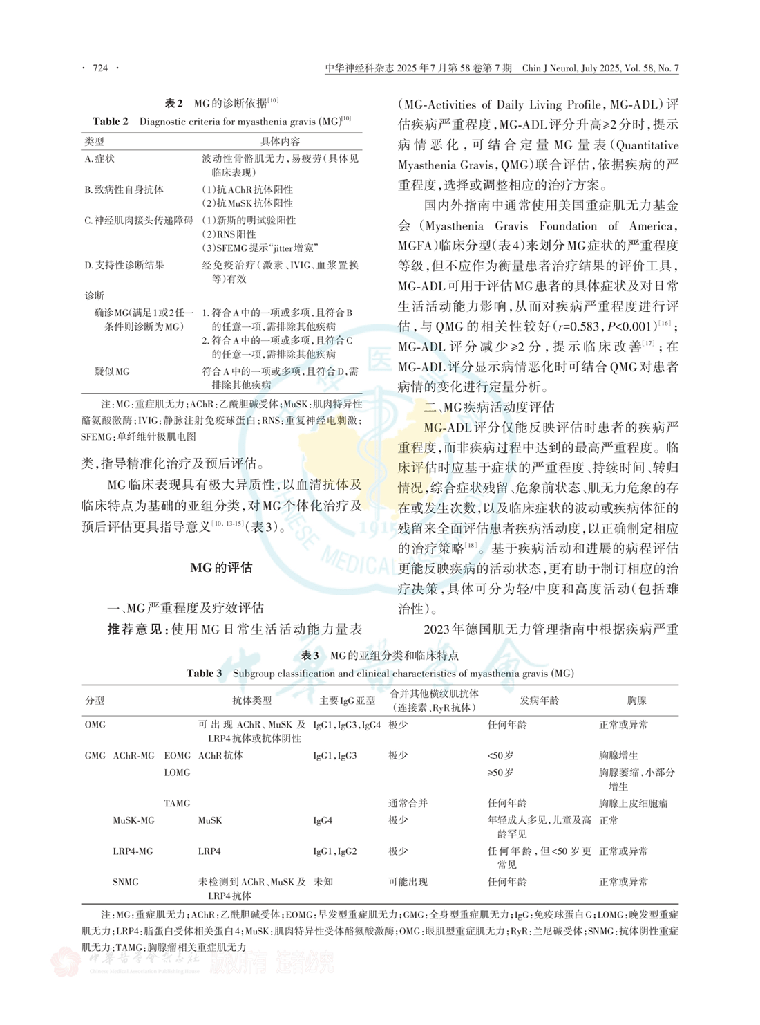 MG亚组分类和临床特点、MG的评估