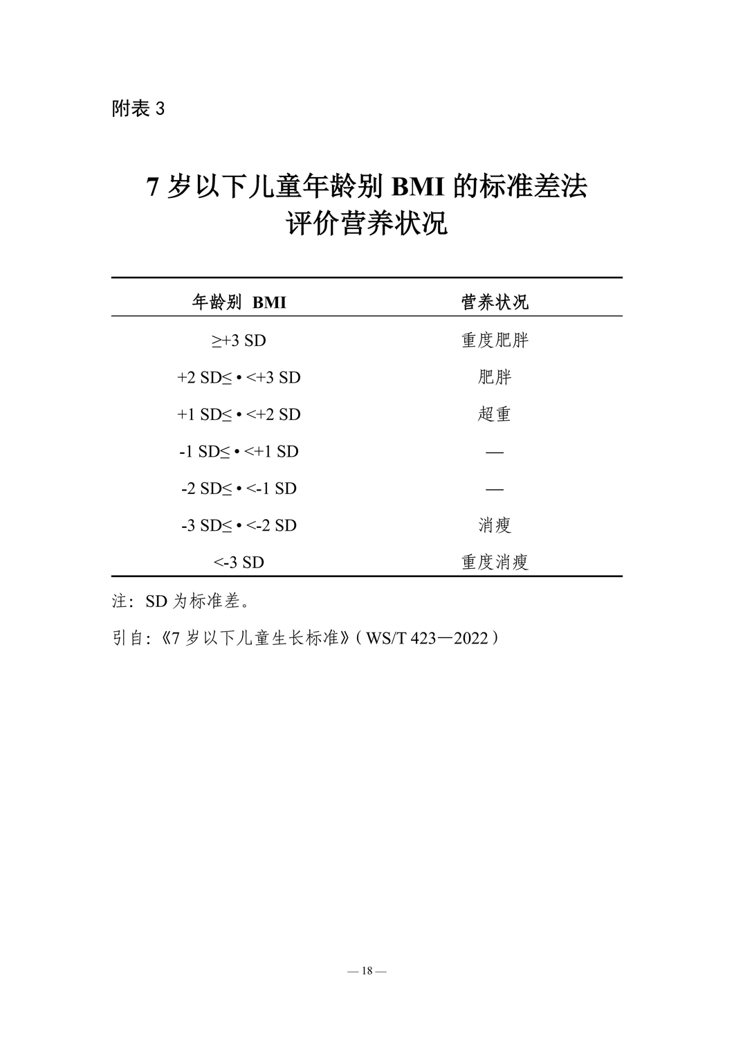 7岁以下儿童年龄别BMI的标准差法评价或养状况