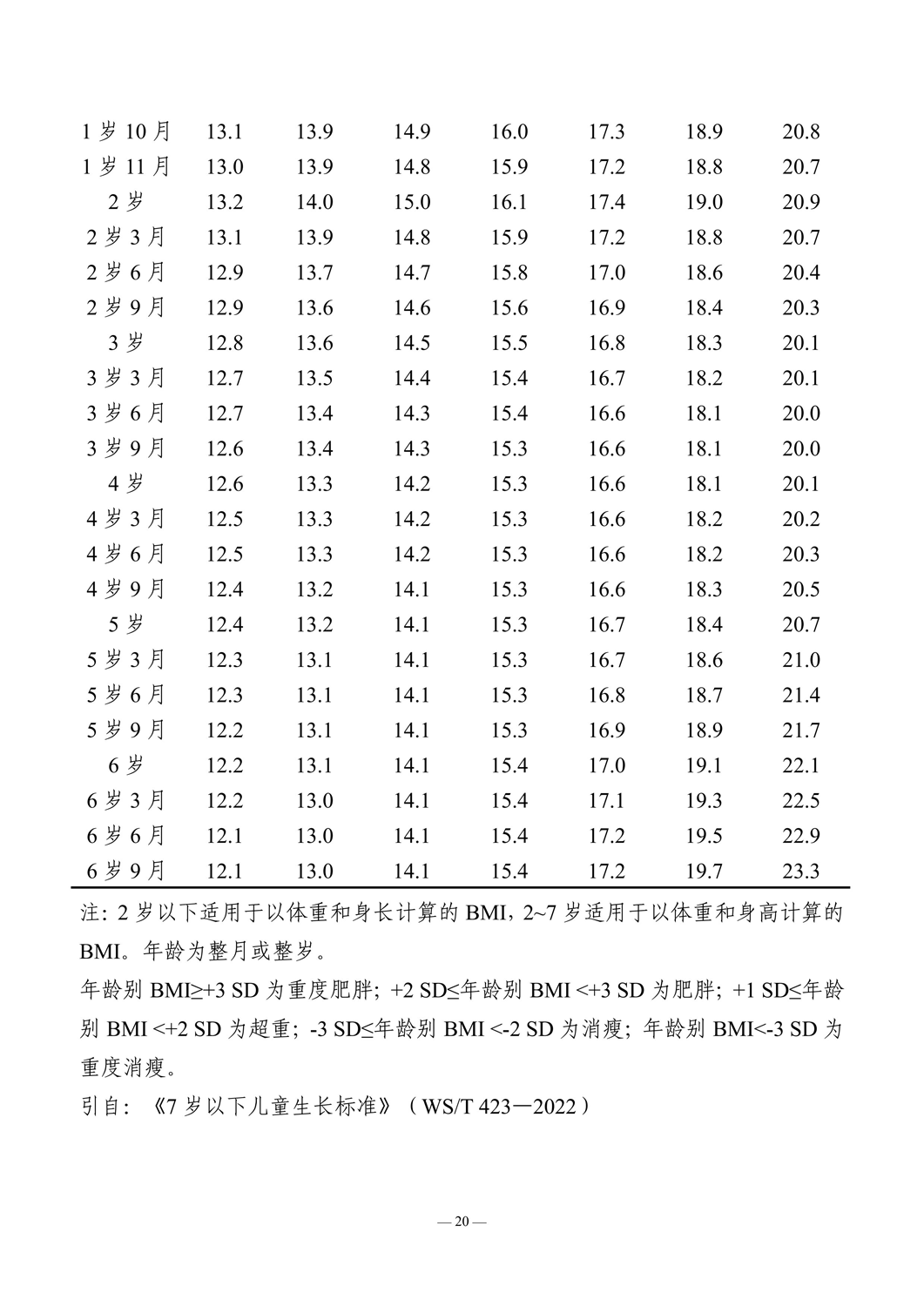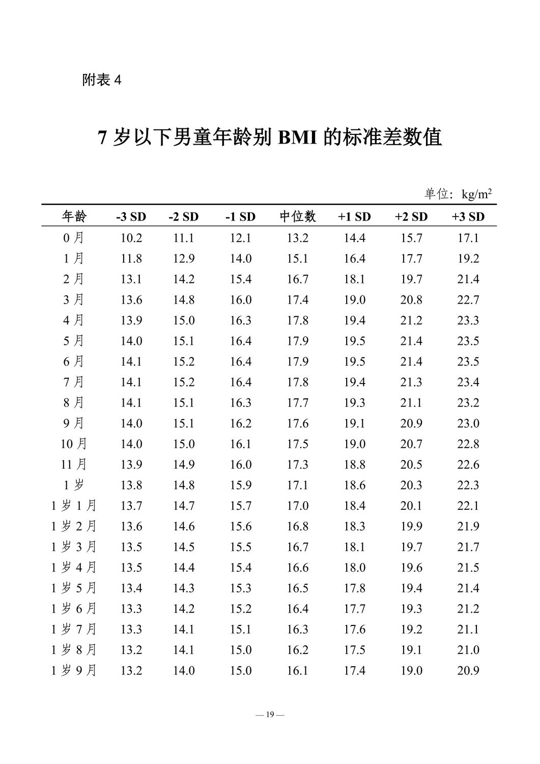 7岁以下儿童年龄别BMI的标准差法评价或养状况