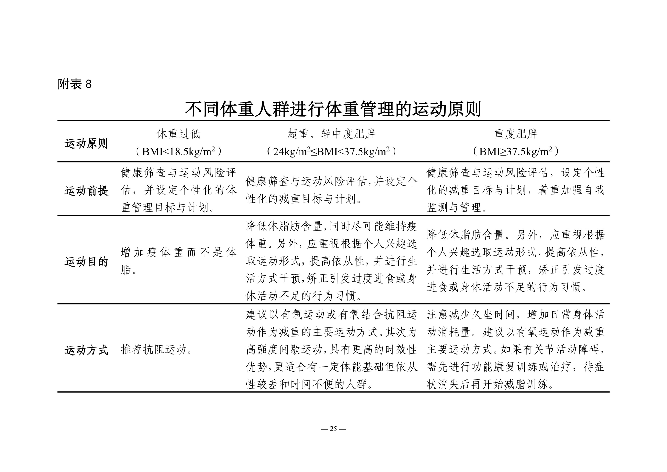 不同体重人群进行体重管理的运动原则
