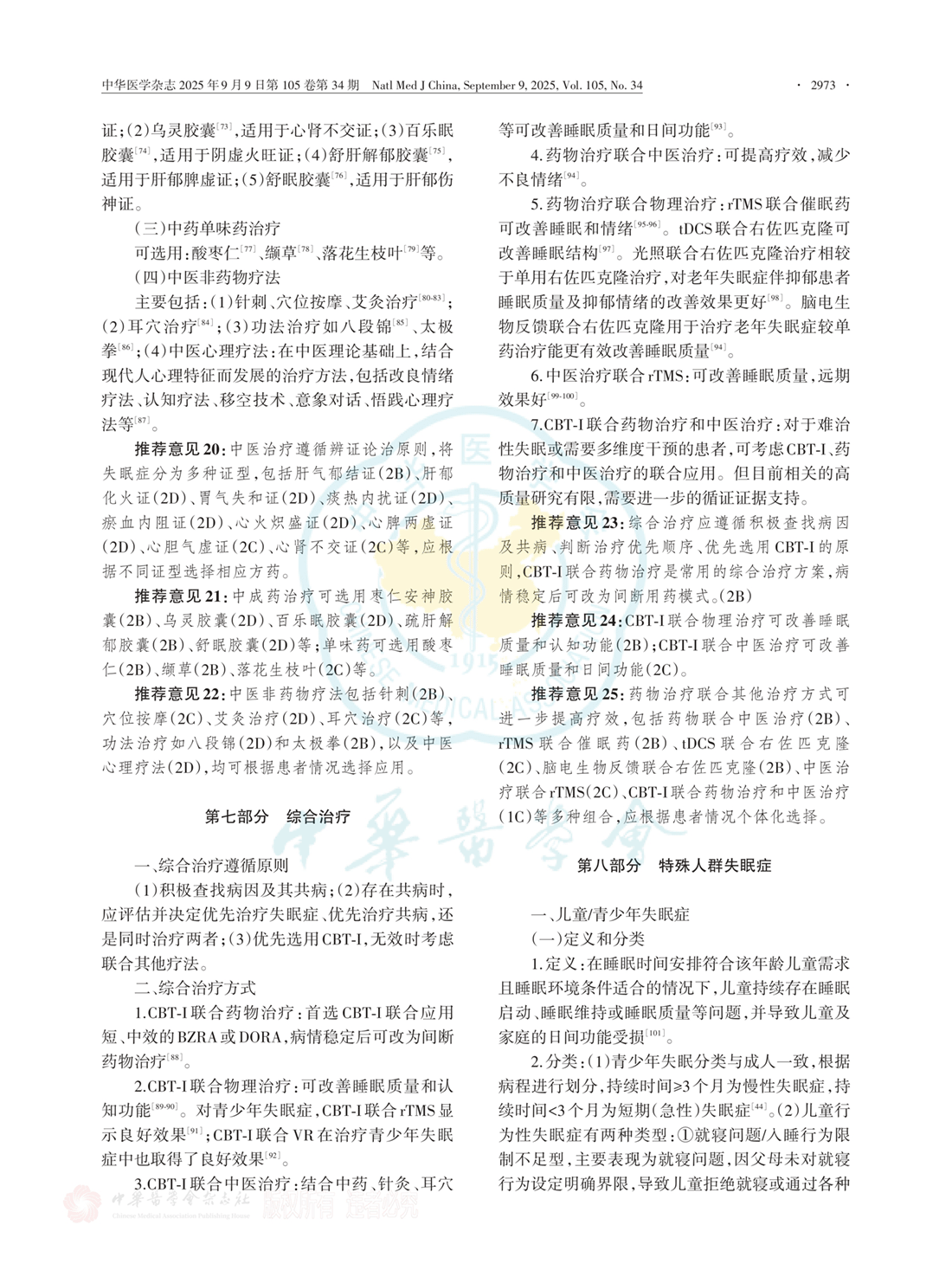 第七部分 综合治疗 第八部分 特殊人群失眠症