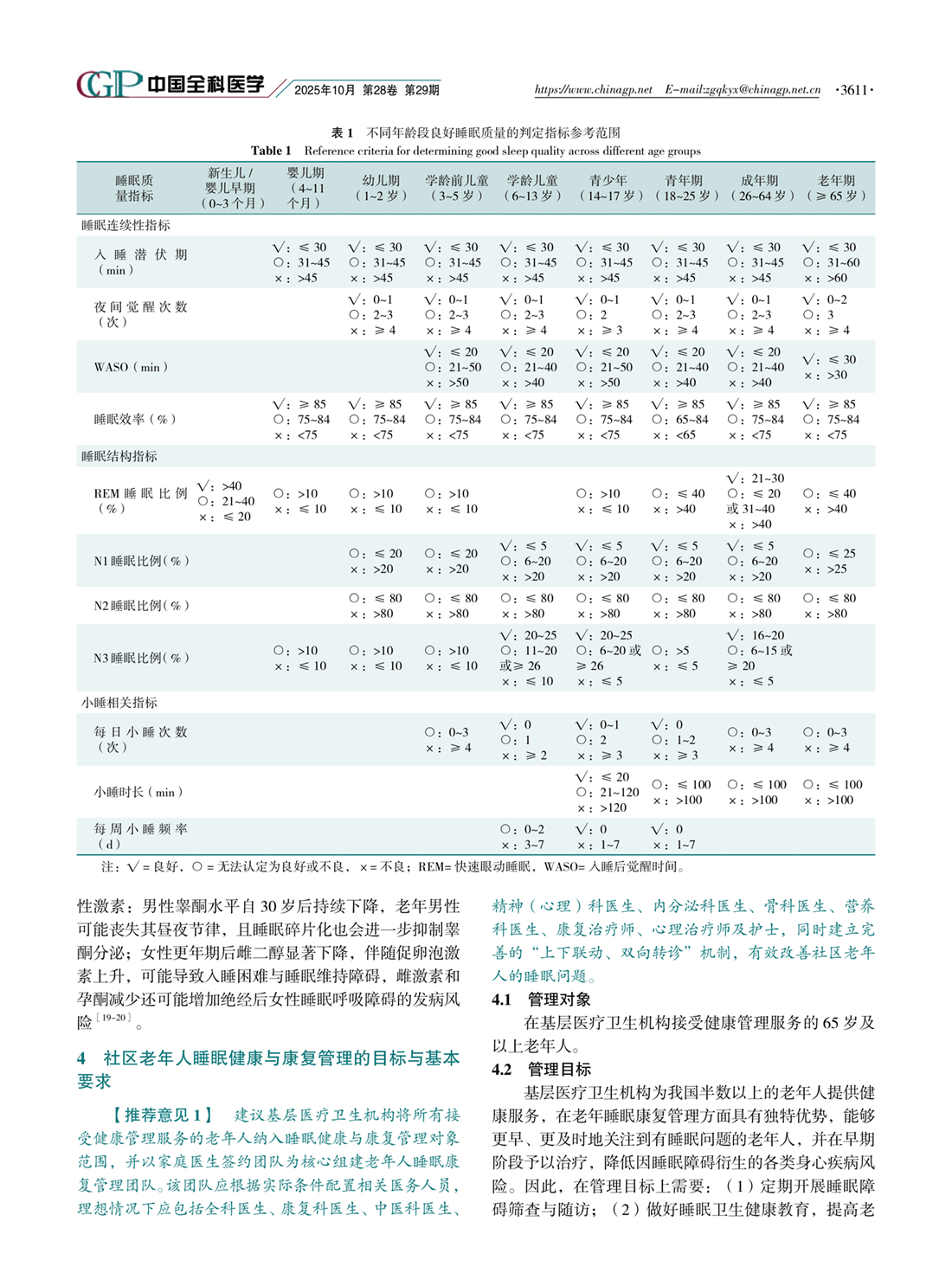 社区老年人睡眠健康与康复共识