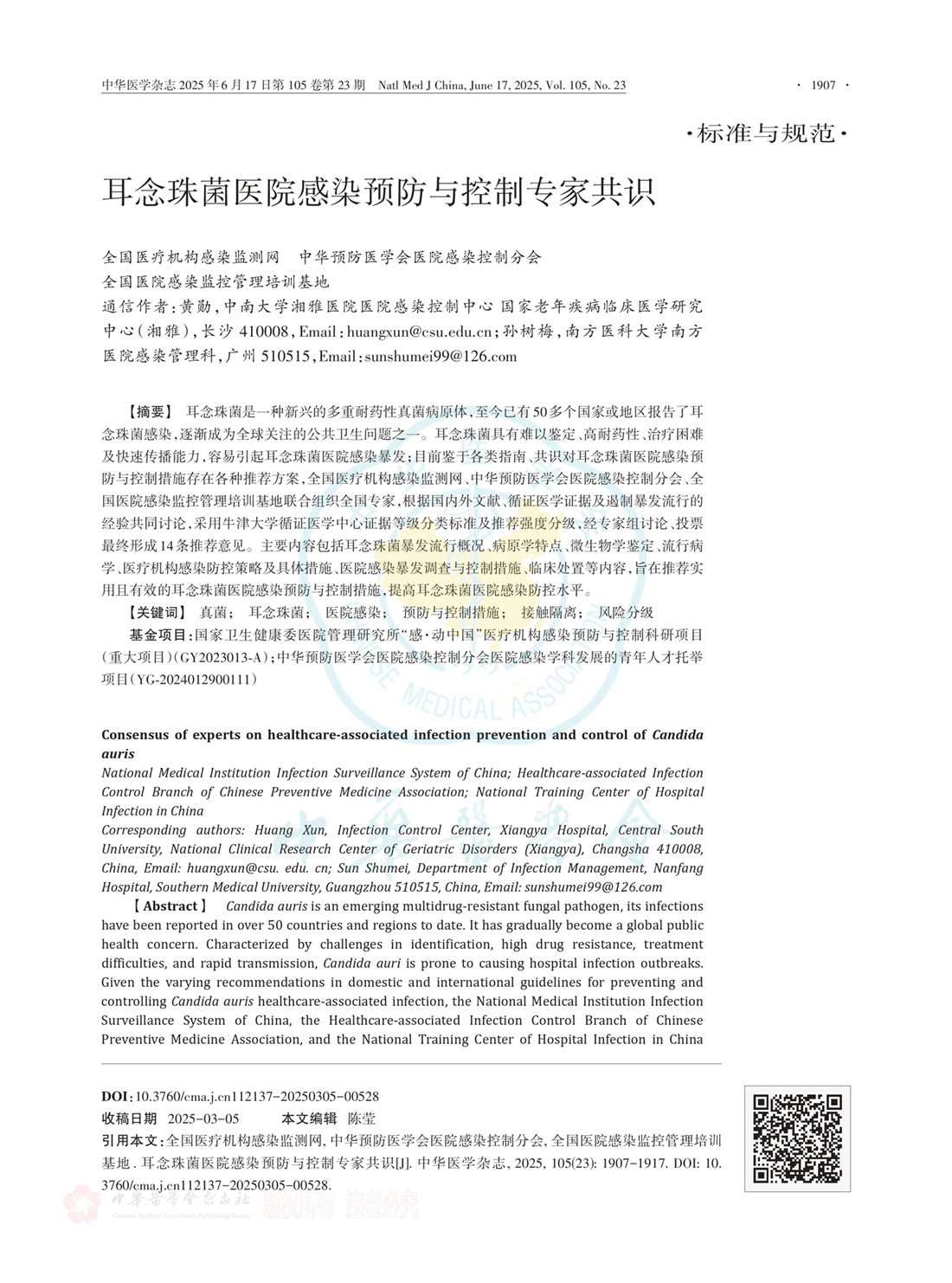 耳念珠菌医院感染预防与控制专家共识(2025年)