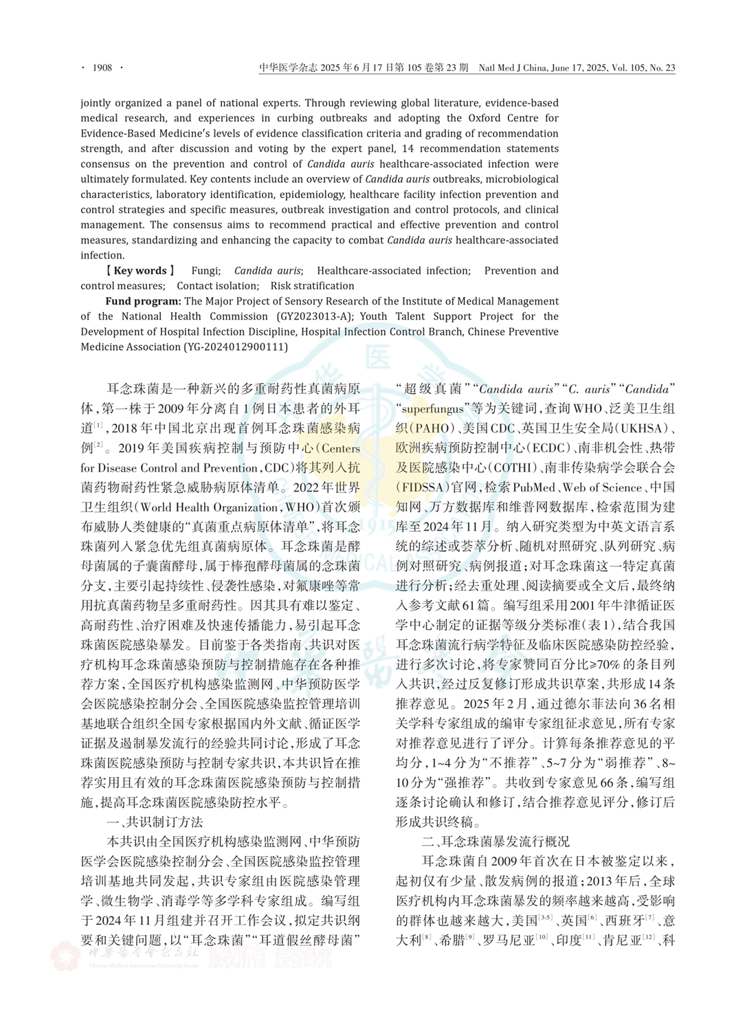 耳念珠菌医院感染预防与控制专家共识(2025年)