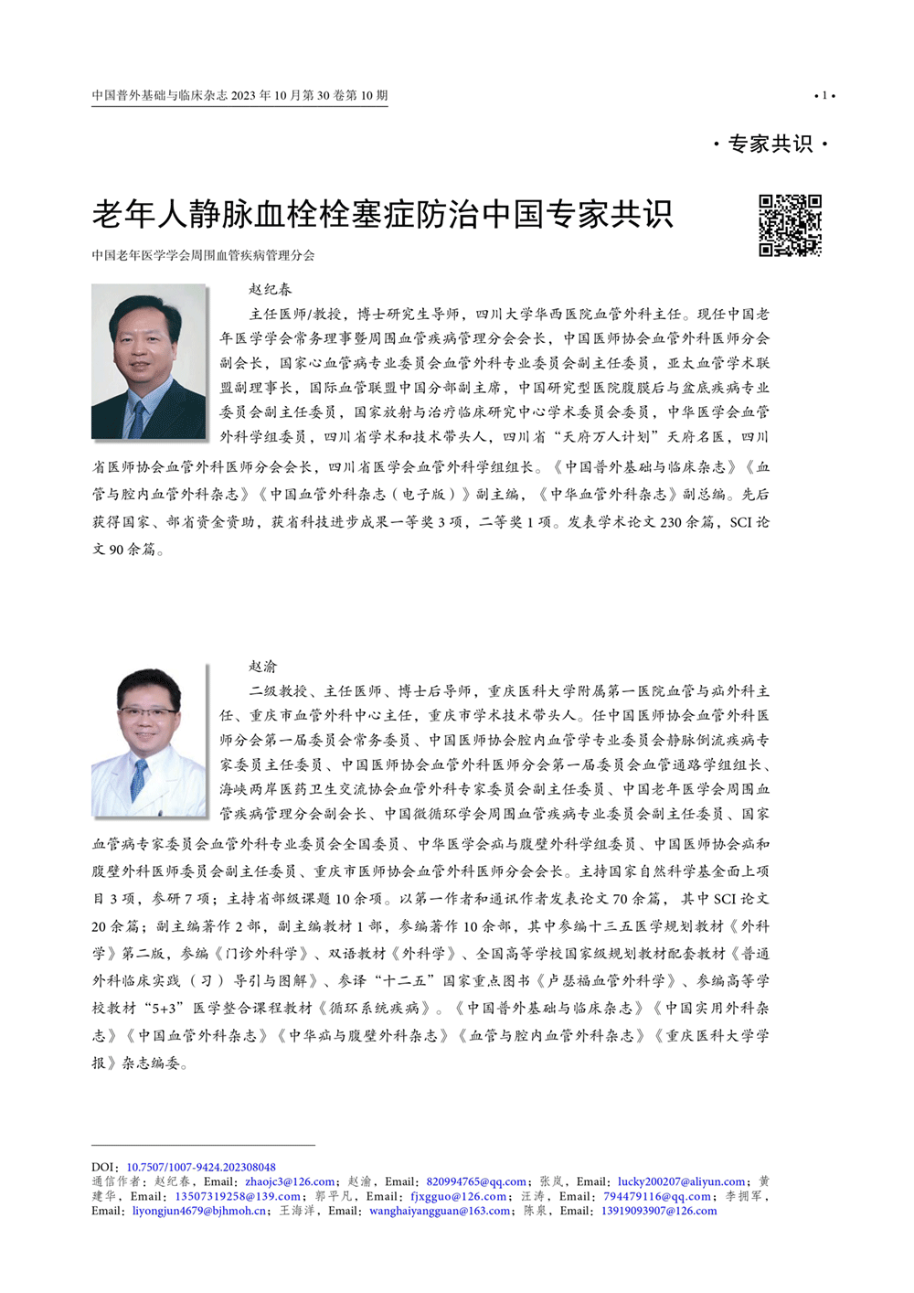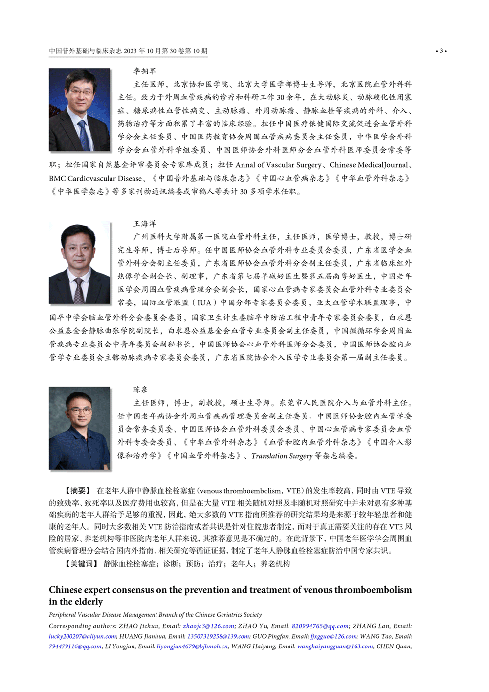 老年人静脉血栓栓塞症防治中国专家共识(2023年)