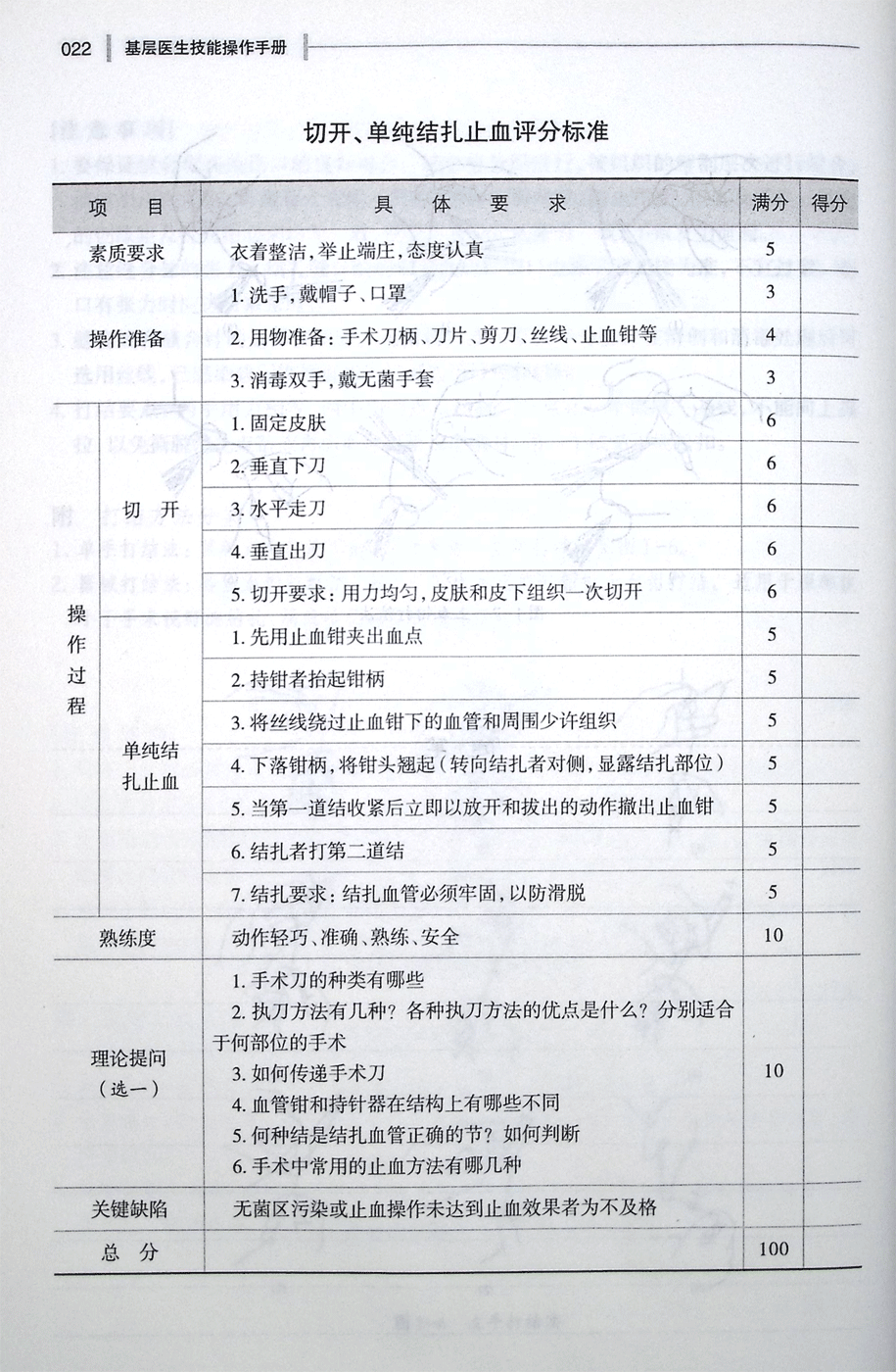 缝合与打结评分标准