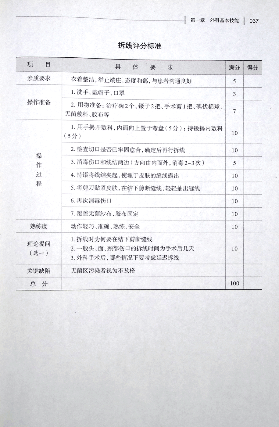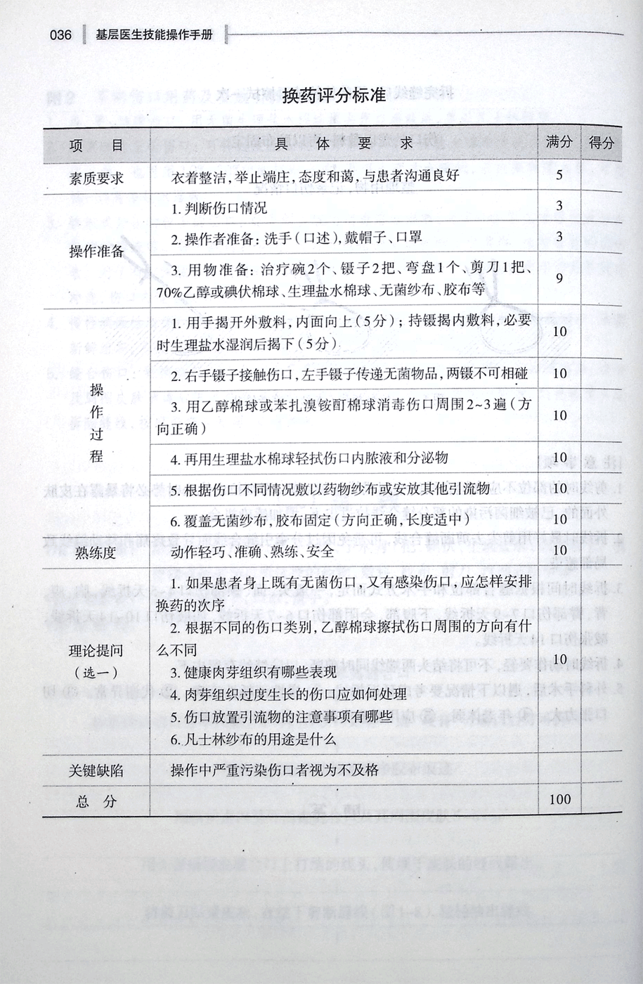 换药评分标准。拆线评分标准