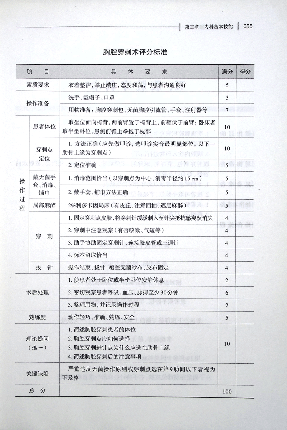 胸腔穿刺术评分标准