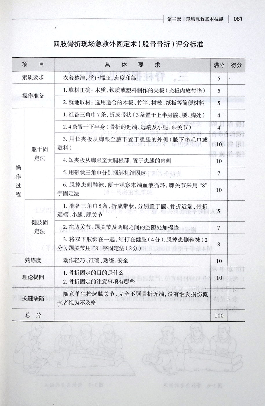 四肢骨折现场急救外固定术(股骨骨折)评分标准