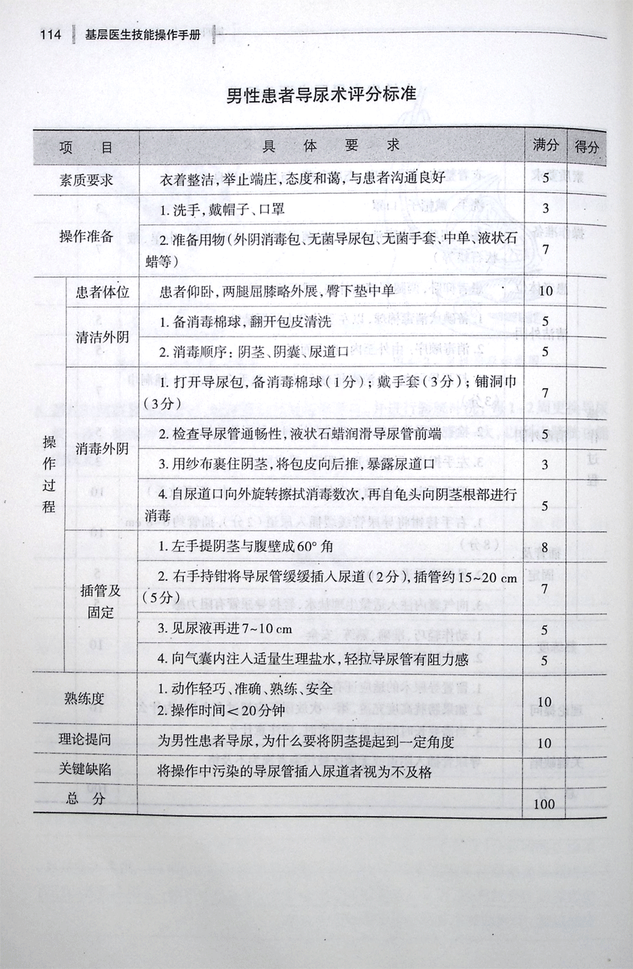 男性患者导尿术评分标准