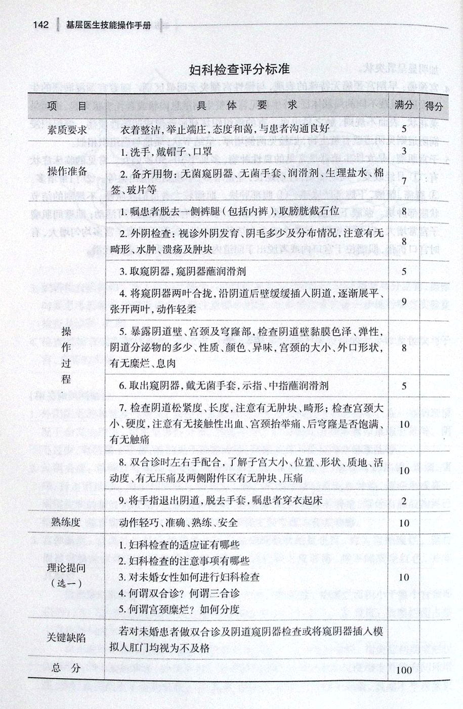 妇科检查评分标准