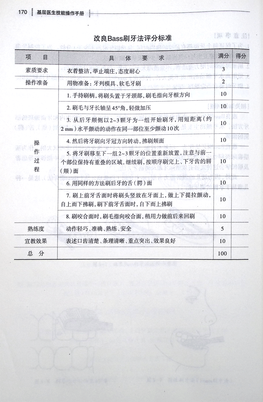 改良Bass刷牙法评分标准
