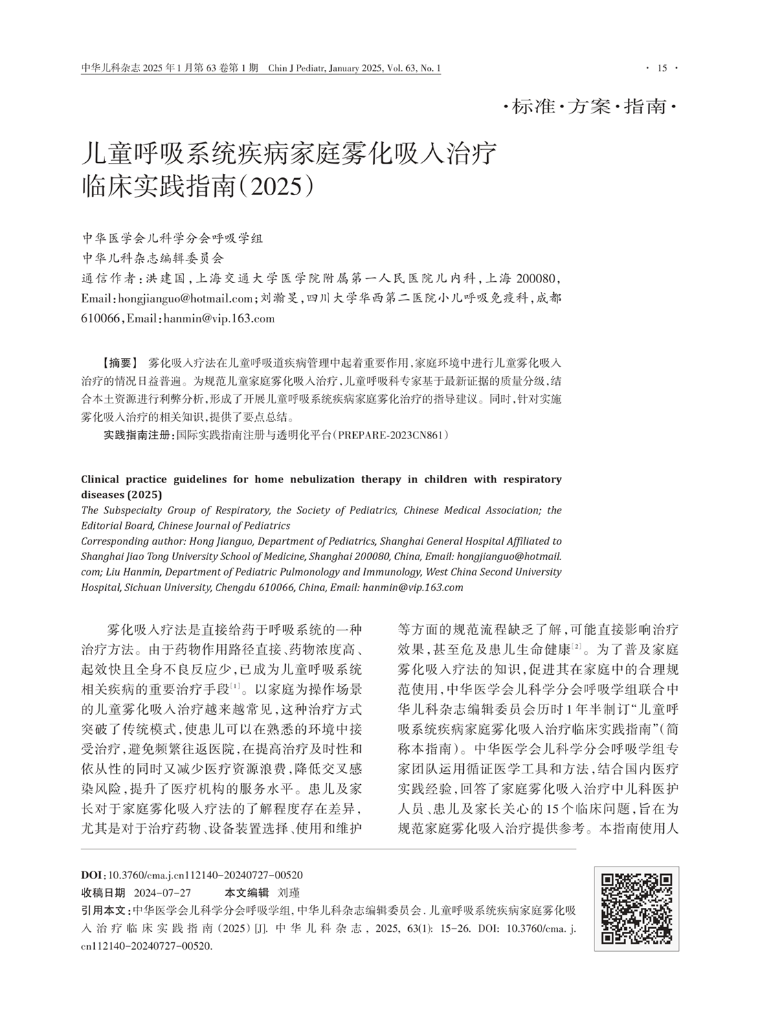 儿童呼吸系统疾病家庭雾化吸入治疗临床实践指南(2025)