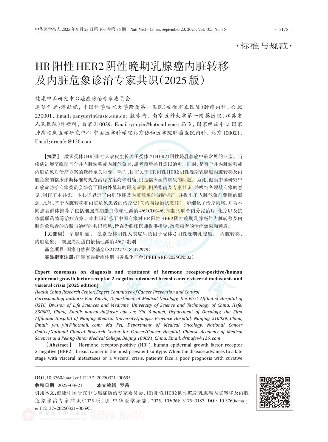 HR阳性HER2阴性晚期乳腺癌内脏转移及内脏危象诊治专家共识(2025版)
