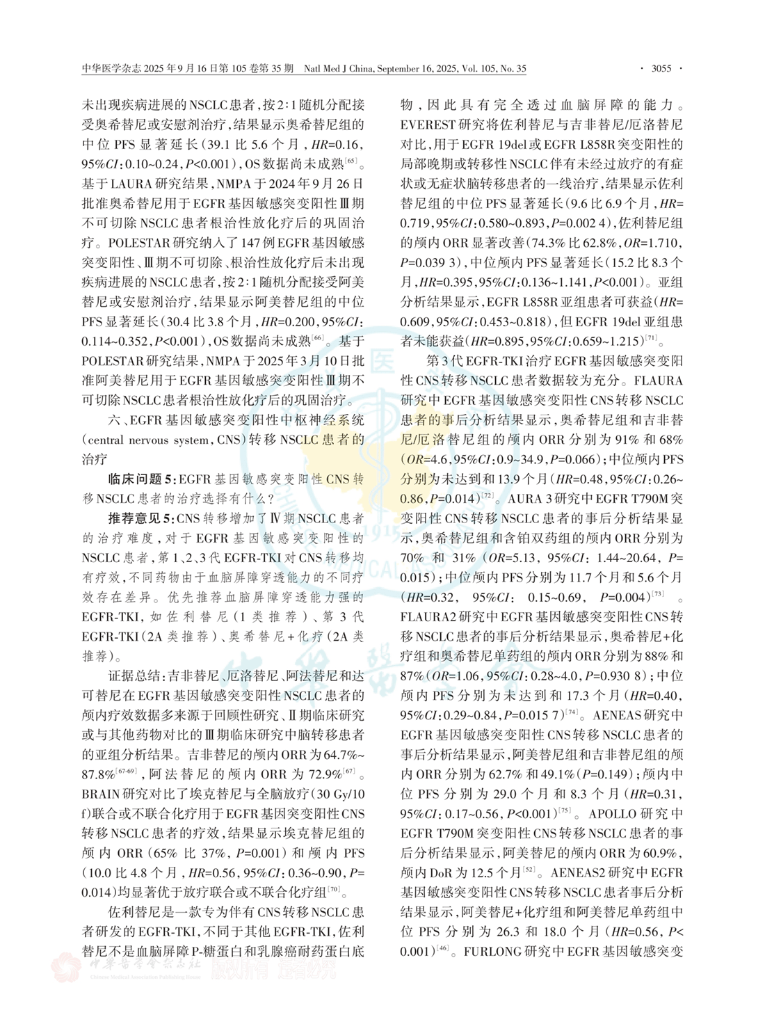 六、EGFR基因敏感突变阳性中枢神经系统转移NSCLC患者的治疗