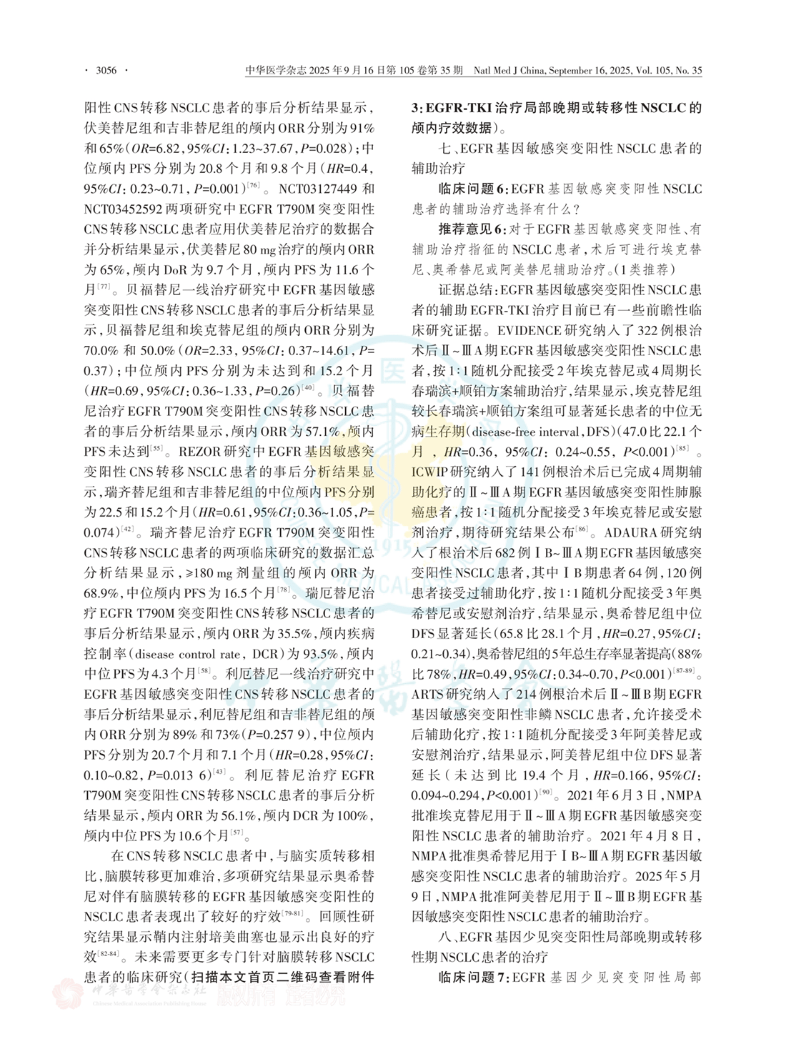 六、EGFR基因敏感突变阳性中枢神经系统转移NSCLC患者的治疗