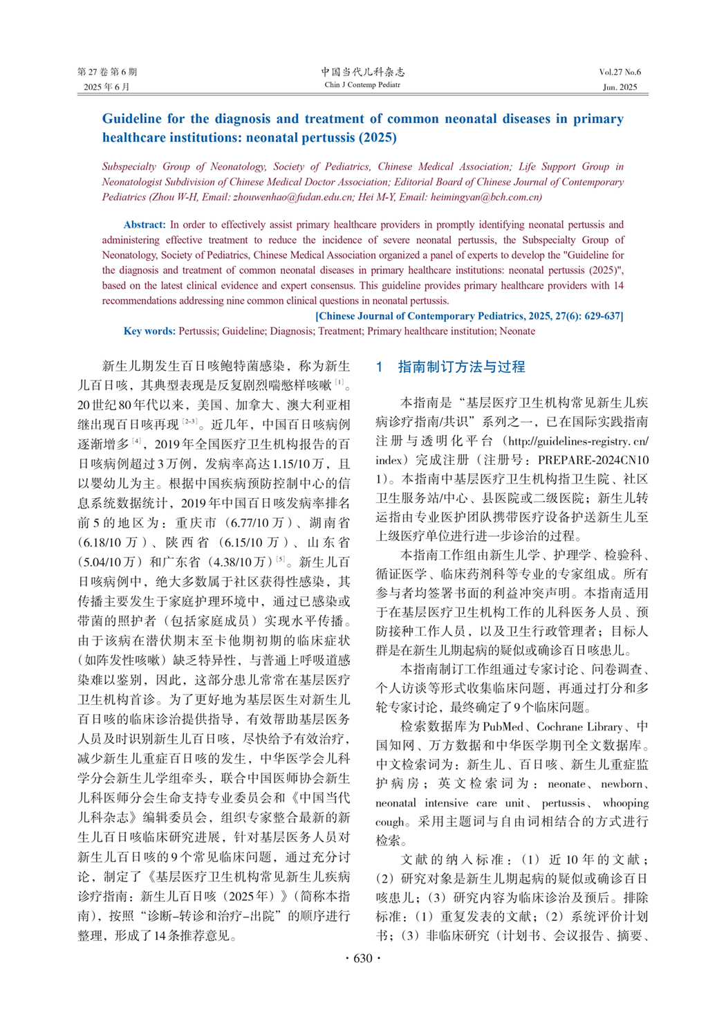 基层医疗卫生机构常见新生儿疾病诊疗指南:新生儿百日咳(2025年)