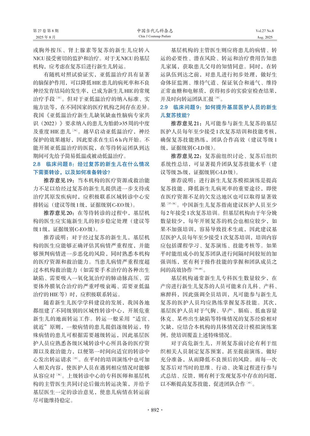 2、临床问题及推荐意见