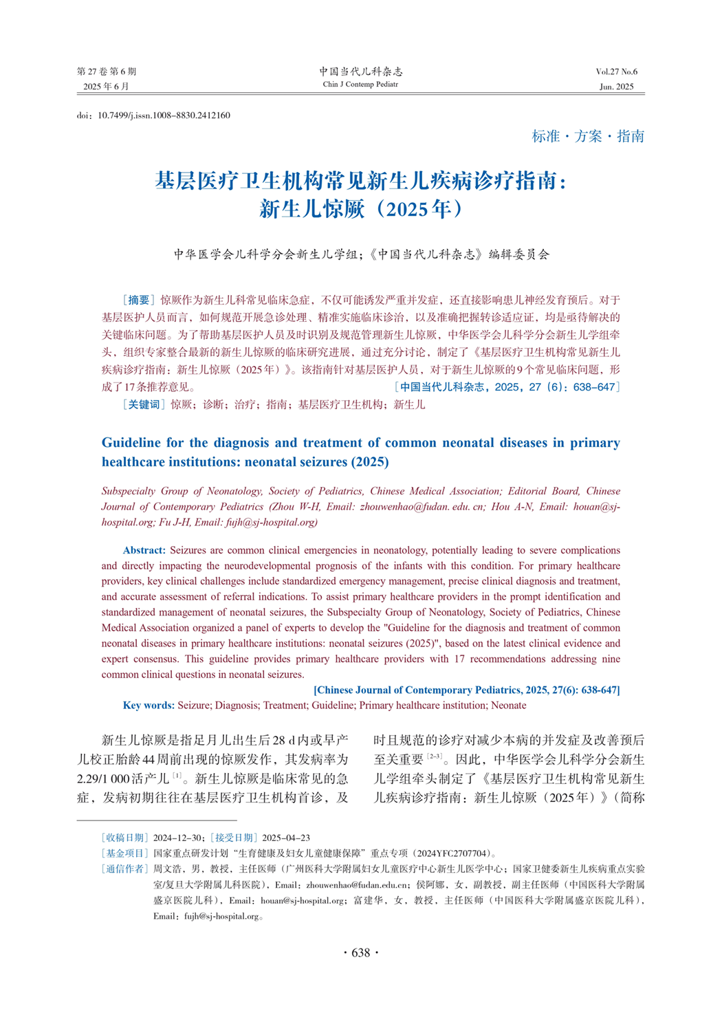 基层医疗卫生机构常见新生儿疾病诊疗指南:新生儿惊厥(2025年)
