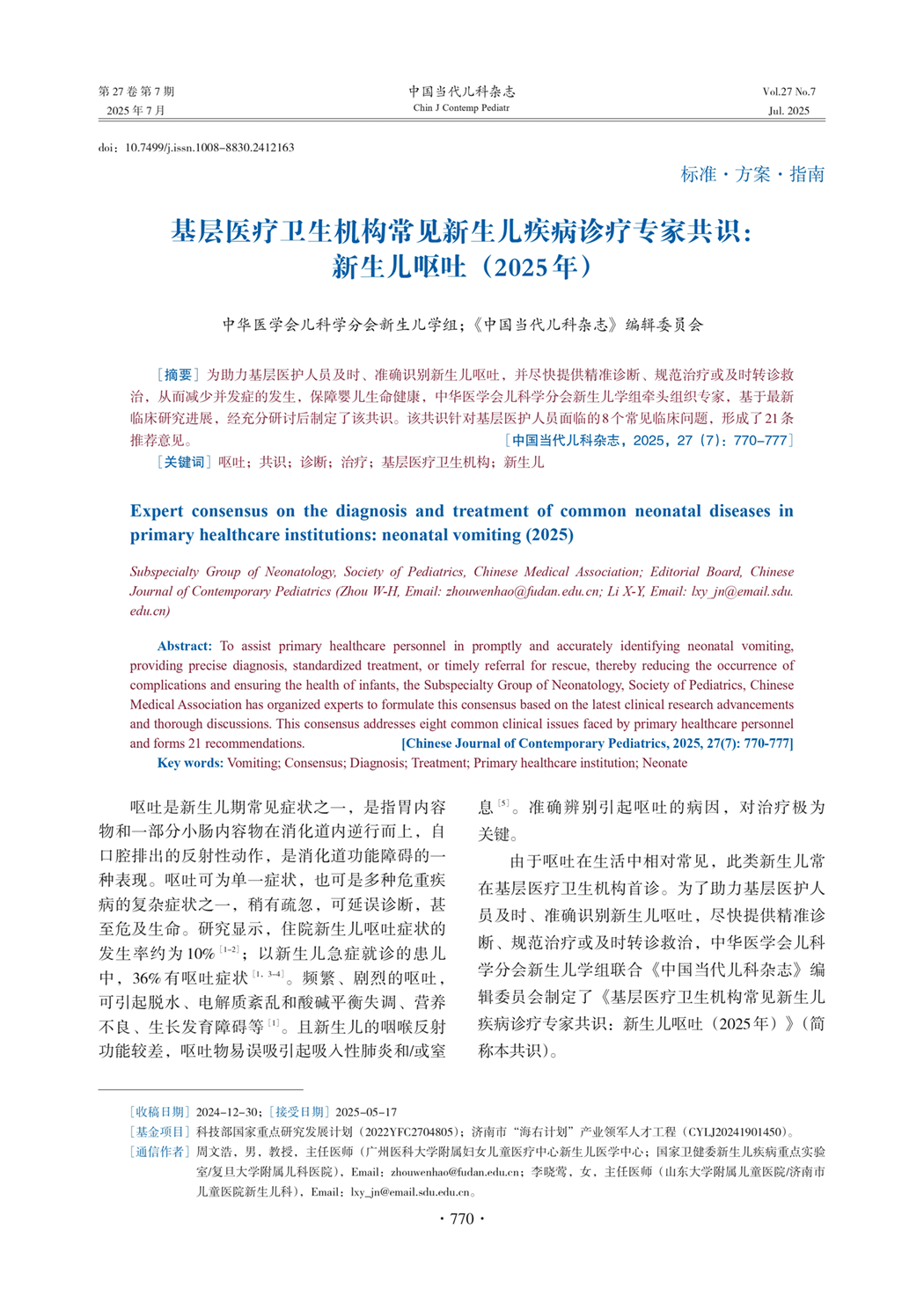 基层医疗卫生机构常见新生儿疾病诊疗指南:新生儿呕吐(2025年)