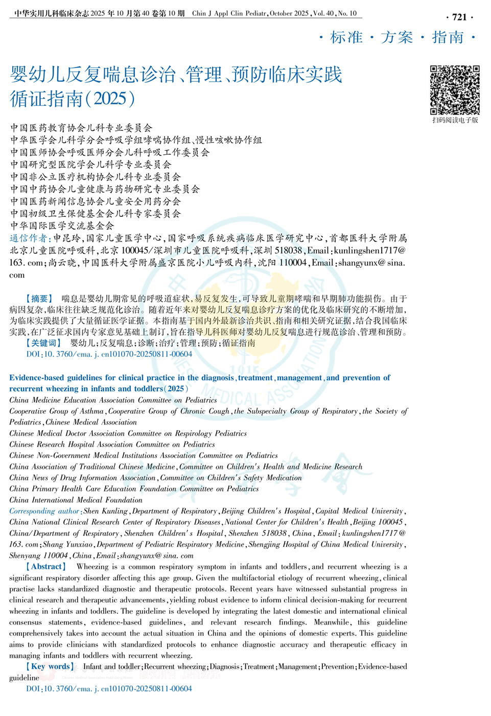 婴幼儿反复喘息诊治、管理、预防临床实践循证指南(2025)